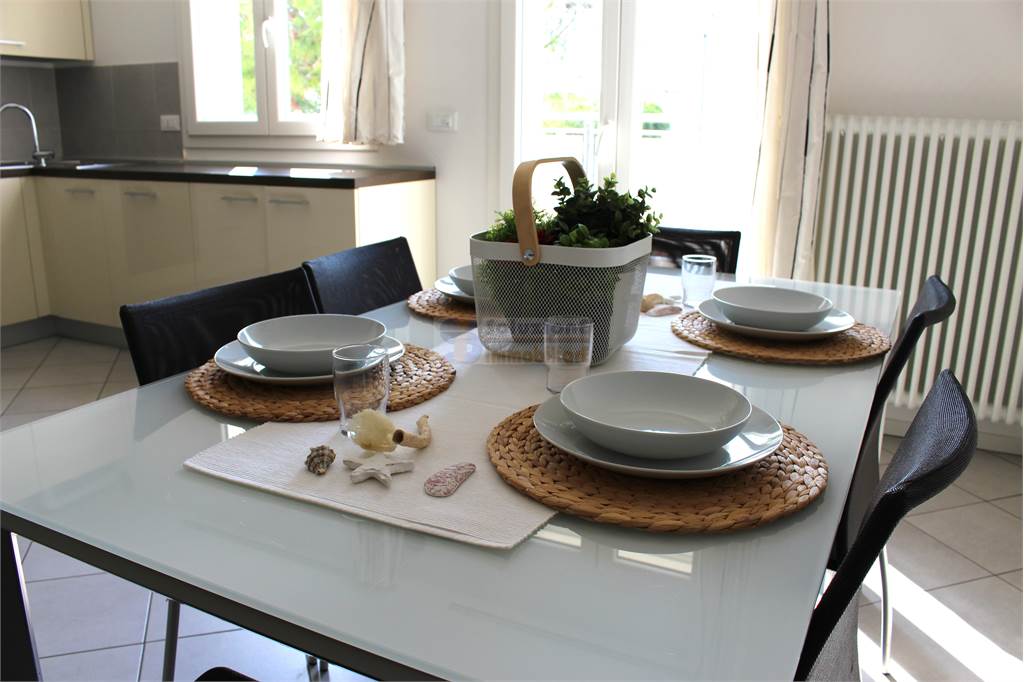 Arredato a nuovo, si compone di ingresso con porta blindata, soggiorno con angolo cottura e divano letto matrimoniale, camera matrimoniale, seconda camera con letto a castello e letto singolo e bagno finestrato con box doccia e lavatrice.