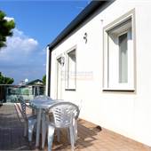 L'ampio terrazzo crea un'estensione dell'appartamento e permette di pranzare - cenare all'aria aperta in assoluta tranquillità con vista sul mare.