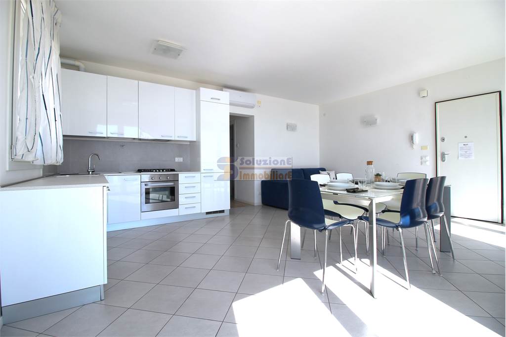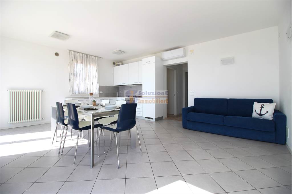 Arredato a nuovo, si compone di ingresso con porta blindata, soggiorno con angolo cottura e divano letto matrimoniale, camera matrimoniale, seconda camera con letto a castello e letto singolo e bagno finestrato con box doccia e lavatrice.