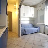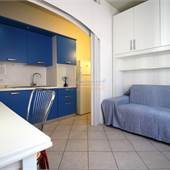 Posto al primo piano di 2 di un piccolo condominio, dispone di angolo cottura, divano letto matrimoniale, nicchia con due letti singoli e bagno finestrato con box doccia e lavatrice.